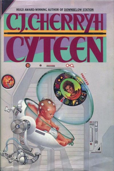 Cyteen tiene el dudoso honor de lucir la peor portada en la larga serie de portadas horribles que, como cuenta Eleanor Arnason en su artículo en Infiltradas, le suele tocar con más frecuencia a los libros de CF escritos por mujeres. Por eso la imagen de este artículo es de una edición en inglés, porque en los tres volúmenes que publicó Nova en los noventa sale «la de los grifos», como sabe cualquiera que me siga en twitter, porque suelo despotricar sobre ella de forma periódica.